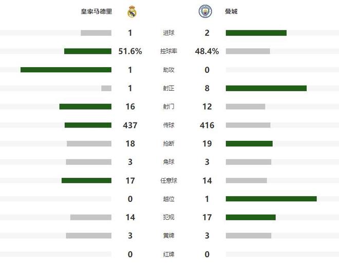 第62分钟多库左路叩开防守球员后低射,被库尔图瓦神扑化解,后点的哈兰德没有反应过来,错失了补射空门的机会,第80分钟皇马又浪费了一次扳平良机,右侧角球开出后,多纳鲁马出击失误没有碰到皮球,后点的维尼修斯面对空门一脚踢飞,5分钟之后替补登场的恩德里克头球攻门,又被横梁拒绝,错失绝平的皇马,只能接受主场败北的结局。